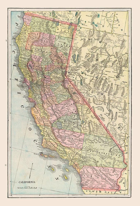 California - Cram 1892 White Modern Wood Framed Art Print with Double Matting by Cram