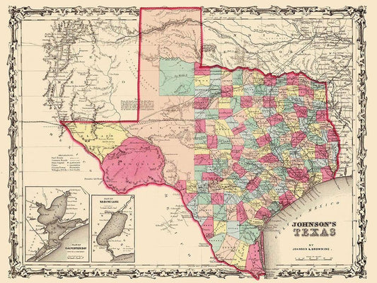 Texas - Johnson 1860 White Modern Wood Framed Art Print with Double Matting by Johnson