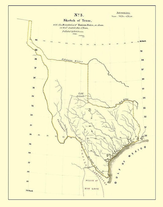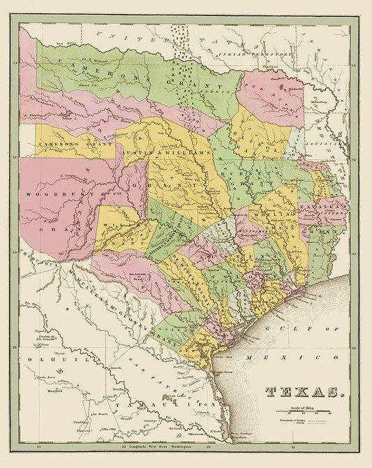 Texas - Cowperthwait and Mitchell 1846 White Modern Wood Framed Art Print with Double Matting by Cowperthwait
