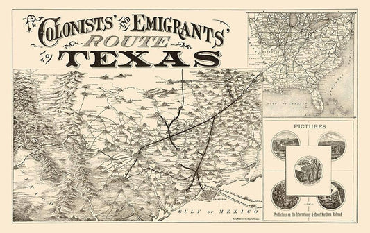 Texas - Texas Land and Immigration 1876 White Modern Wood Framed Art Print with Double Matting by Texas Land and Immigration