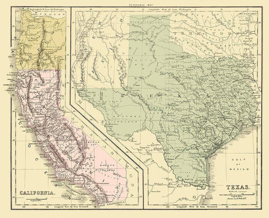 Texas with California and Oregon - Appleton 1864 White Modern Wood Framed Art Print with Double Matting by Appleton