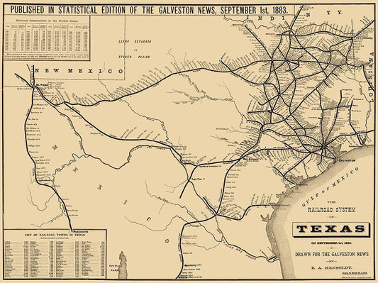 Texas Railroad System - Hensoldt 1883 White Modern Wood Framed Art Print with Double Matting by Hensoldt
