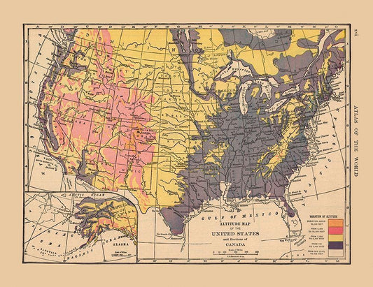 Altitude Map of US, Canada - Hammond 1910 White Modern Wood Framed Art Print with Double Matting by Hammond