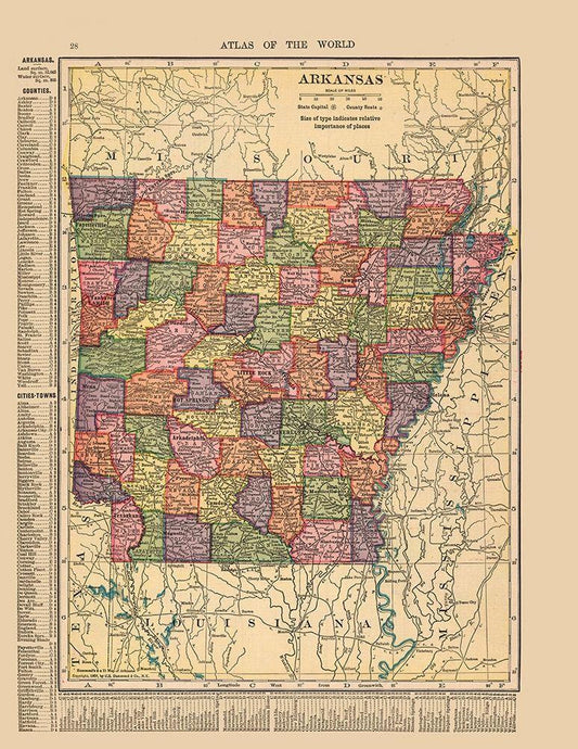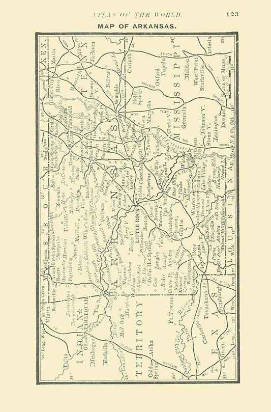 Arkansas - Alden 1886 White Modern Wood Framed Art Print with Double Matting by Alden