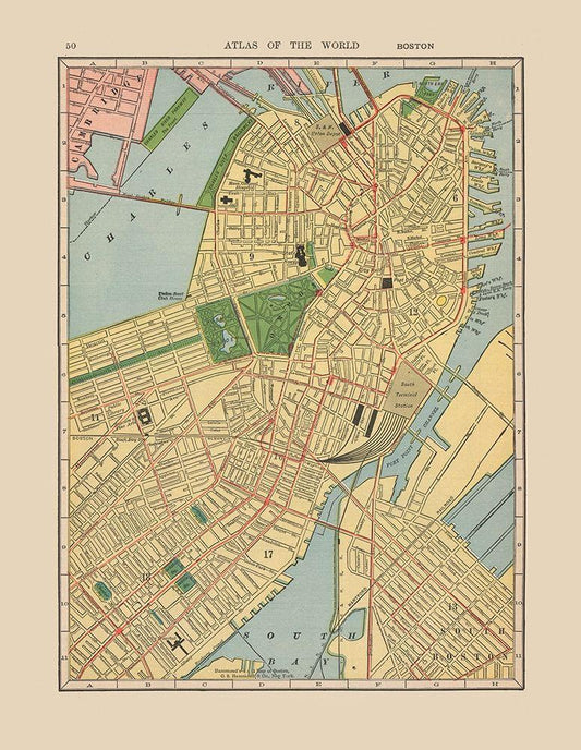 Boston Massachusetts - Hammond 1910 White Modern Wood Framed Art Print with Double Matting by Hammond