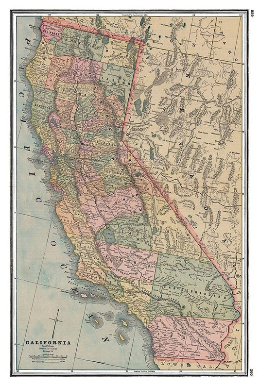 California - Johnson 1888 White Modern Wood Framed Art Print with Double Matting by Johnson