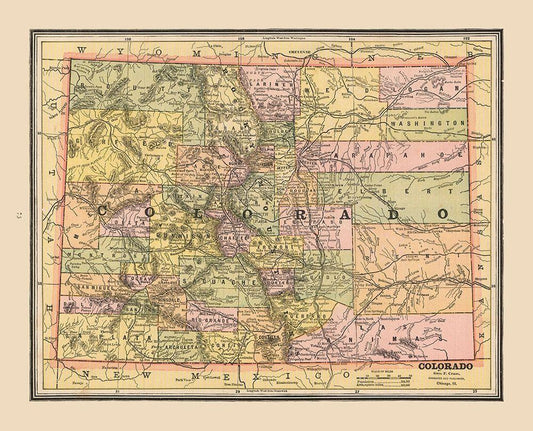 Colorado, United States - Cram 1888 White Modern Wood Framed Art Print with Double Matting by Cram