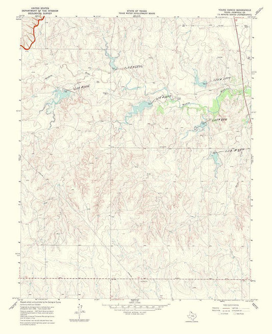 Young Ranch Texas Quad - USGS 1969 White Modern Wood Framed Art Print with Double Matting by USGS