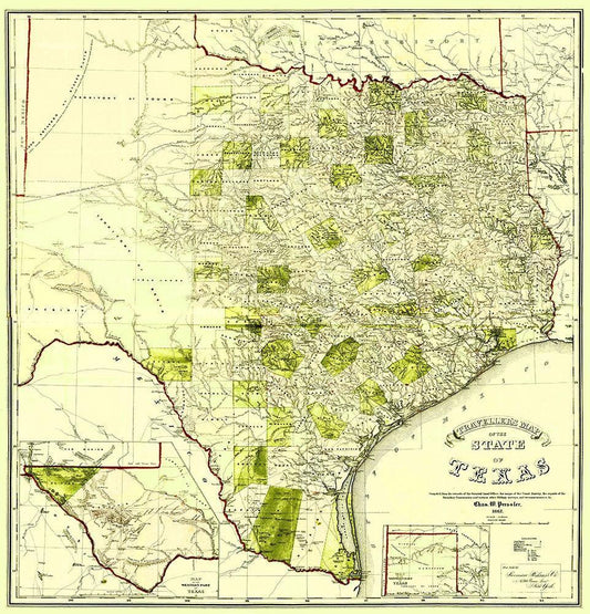Travellers Map of the State of Texas 1867 White Modern Wood Framed Art Print with Double Matting by Pressler