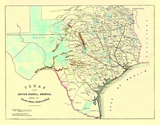 Galveston, Houston, Henderson Railroad 1872 White Modern Wood Framed Art Print with Double Matting by King
