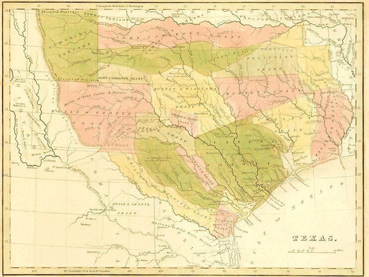 Texas with Grants and Indian Territory - 1819 White Modern Wood Framed Art Print with Double Matting by Unknown