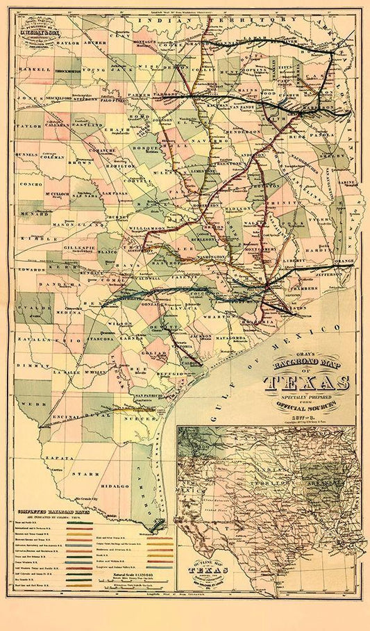 GrayS Railroad Map - 1877 White Modern Wood Framed Art Print with Double Matting by Unknown