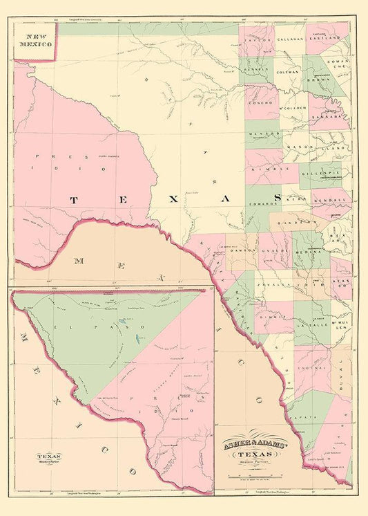 Texas Western Portion - Asher 1874 White Modern Wood Framed Art Print with Double Matting by Asher