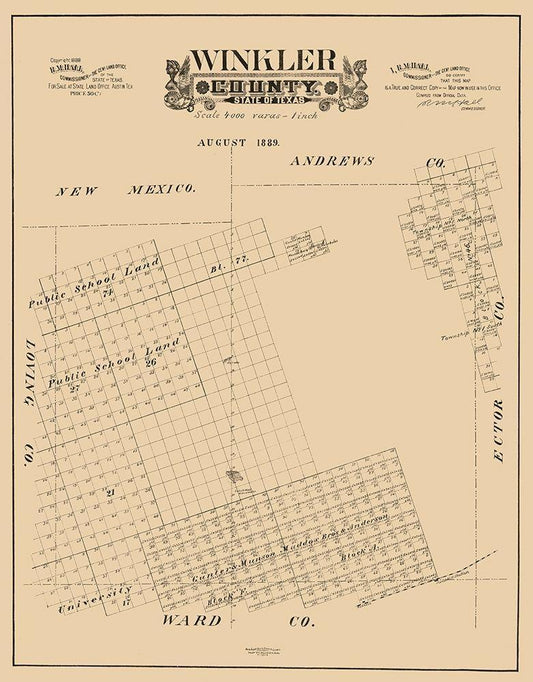Winkler County Texas - Hall 1889 White Modern Wood Framed Art Print with Double Matting by Hall