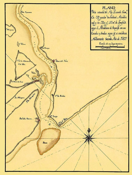 Mouth of The Rio Grande - 1767 White Modern Wood Framed Art Print with Double Matting by Unknown