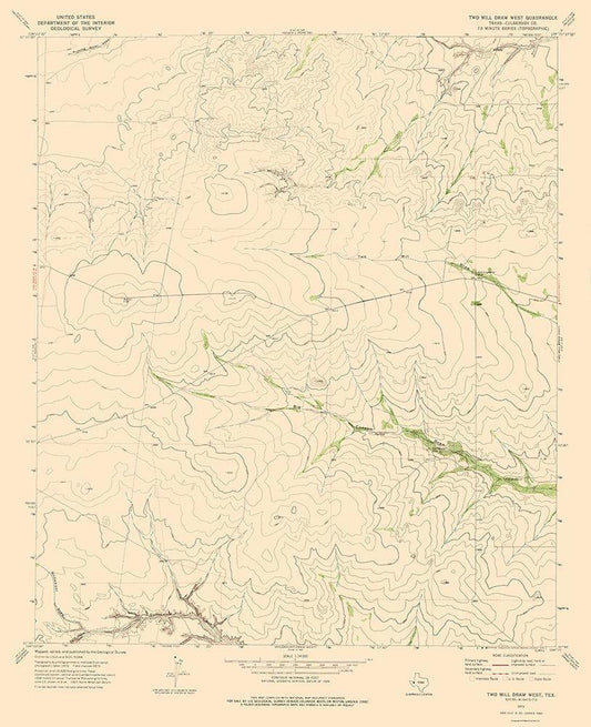 Two Mill Draw West Texas Quad - USGS 1973 White Modern Wood Framed Art Print with Double Matting by USGS
