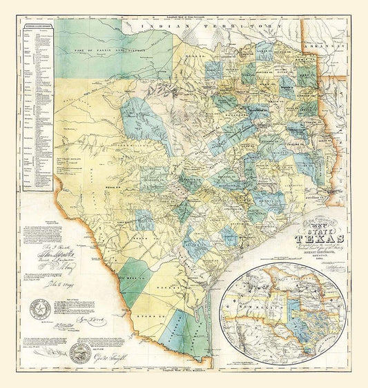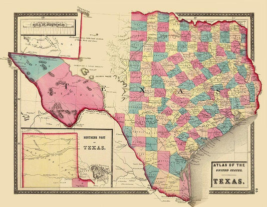 Texas - Northern Texas - Walling 1872 White Modern Wood Framed Art Print with Double Matting by Walling