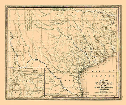 Texas - Williams 1845 White Modern Wood Framed Art Print with Double Matting by Williams