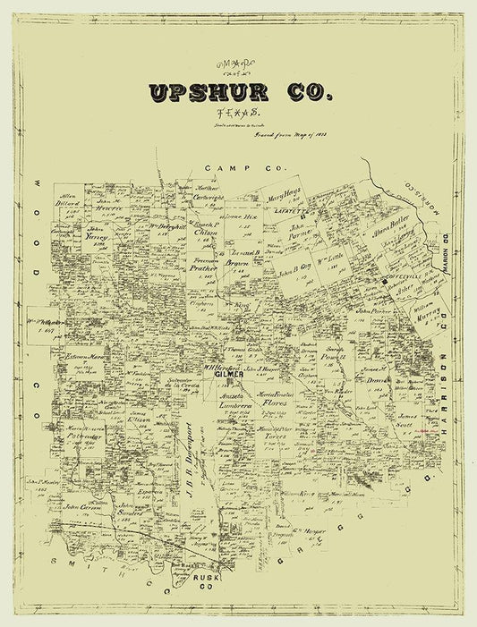 Upshur County Texas -1873 White Modern Wood Framed Art Print with Double Matting by Unknown