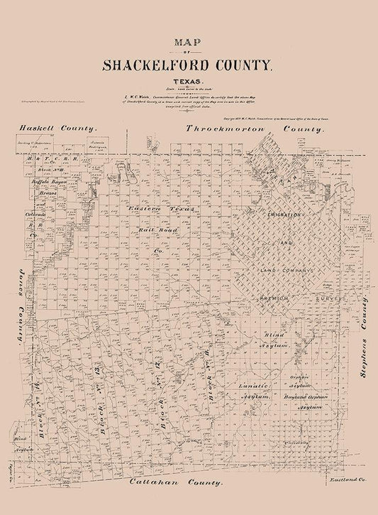 Shackelford County Texas - Walsh 1879 White Modern Wood Framed Art Print with Double Matting by Walsh