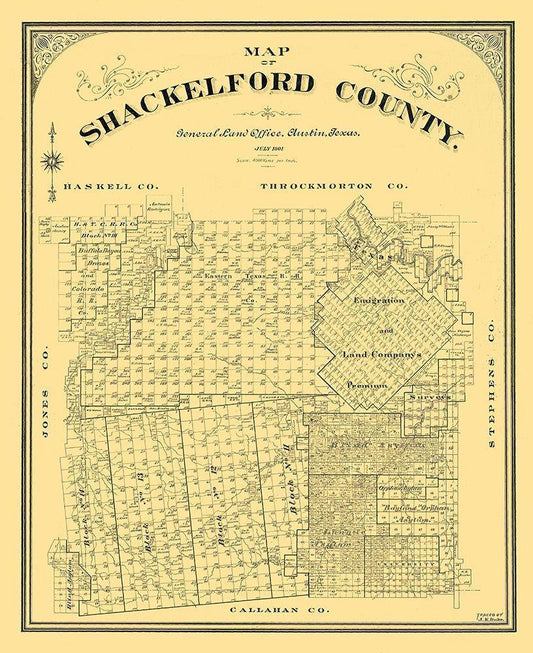 Stephens County Texas - Strickland 1870 White Modern Wood Framed Art Print with Double Matting by Strickland
