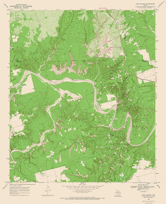 Tige Canyon Texas Quad - USGS 1969 White Modern Wood Framed Art Print with Double Matting by USGS