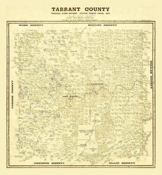 Tarrant County Texas - Lucas 1873 White Modern Wood Framed Art Print with Double Matting by Lucas