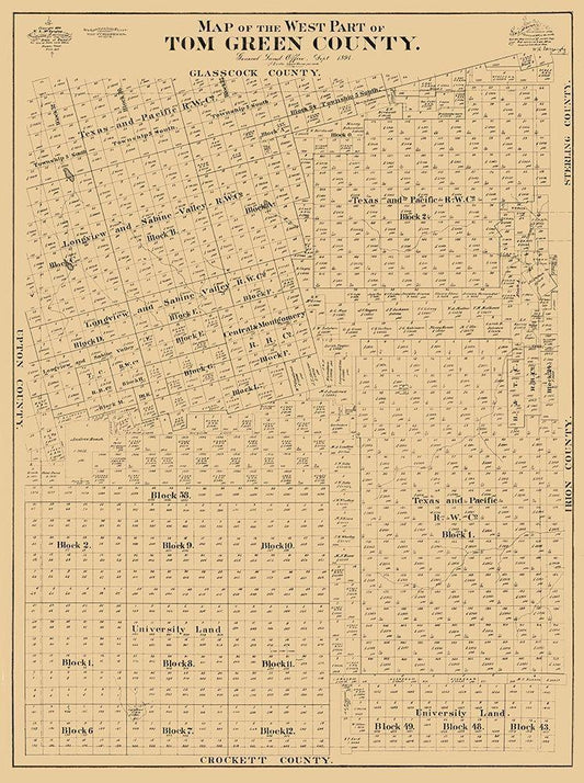 Tom Green County West - McCaughy 1894 White Modern Wood Framed Art Print with Double Matting by McCaughy