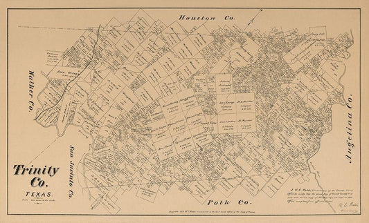 Trinity County Texas - Walsh 1879 White Modern Wood Framed Art Print with Double Matting by Walsh