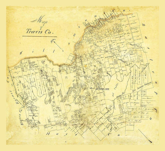 Travis County Texas White Modern Wood Framed Art Print with Double Matting by Unknown
