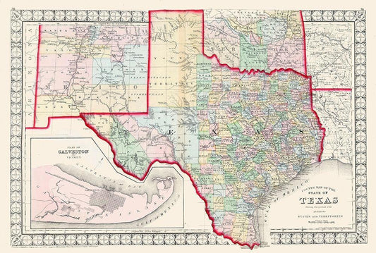 Texas - Augustus Mitchell 1874 White Modern Wood Framed Art Print with Double Matting by Mitchell