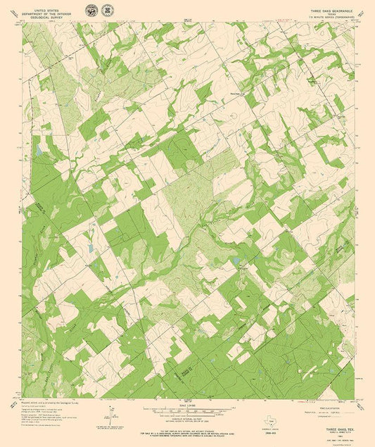 Three Oaks Texas Quad - USGS 1961 White Modern Wood Framed Art Print with Double Matting by USGS