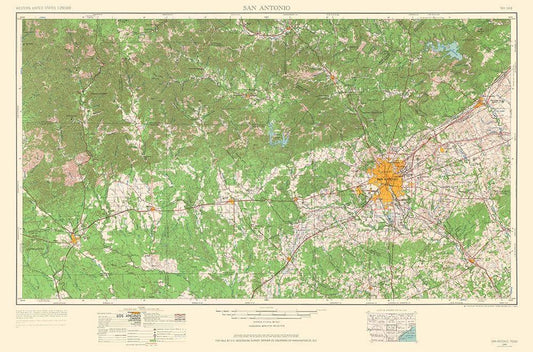 San Antonio Texas Quad - USGS 1964 White Modern Wood Framed Art Print with Double Matting by USGS