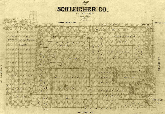 Schleicher County Texas -1887 White Modern Wood Framed Art Print with Double Matting by Unknown