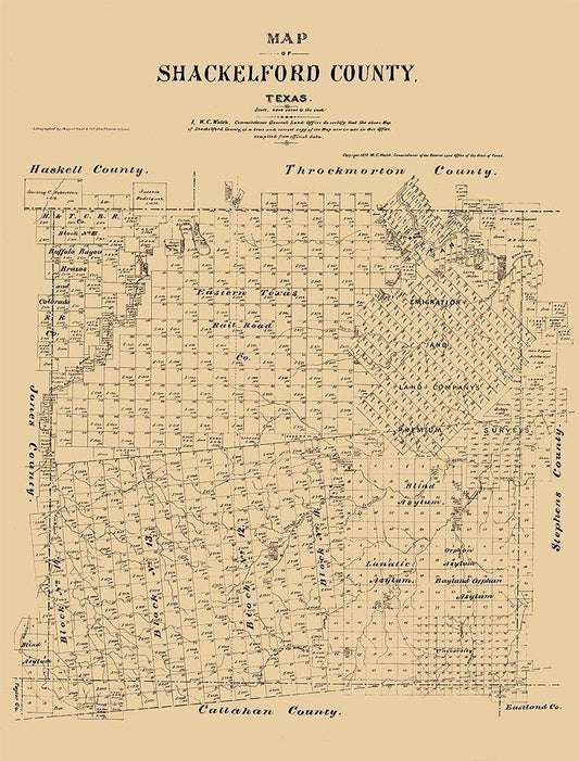 Shackelford County Texas - Walsh 1879 White Modern Wood Framed Art Print with Double Matting by Walsh