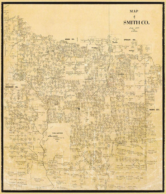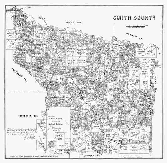 Smith County Texas - Walsh 1880 White Modern Wood Framed Art Print with Double Matting by Walsh