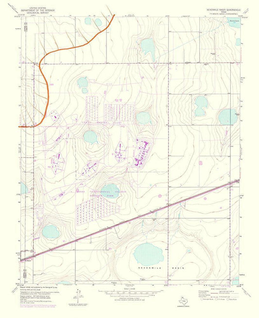 Sevenmile Basin Texas Quad - USGS 1975 White Modern Wood Framed Art Print with Double Matting by USGS