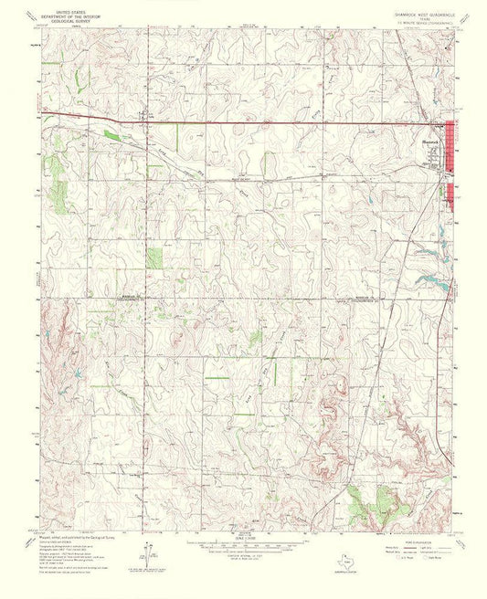 Shamrock West Texas Quad - USGS 1967 White Modern Wood Framed Art Print with Double Matting by USGS