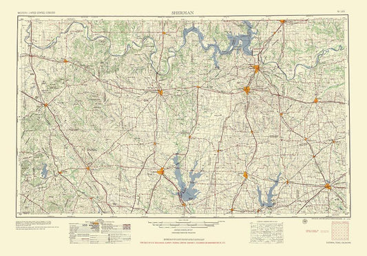 Sherman Texas Quad - USGS 1954 White Modern Wood Framed Art Print with Double Matting by USGS