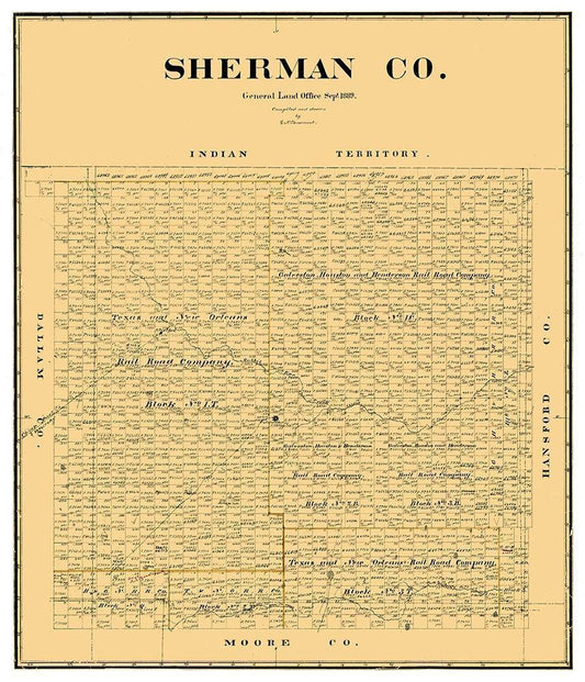 Sherman County Texas - Beaumont 1889 White Modern Wood Framed Art Print with Double Matting by Beaumont