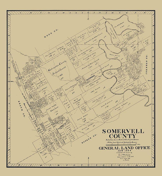 Somervell County Texas - Theilepape 1884 White Modern Wood Framed Art Print with Double Matting by Thielepape