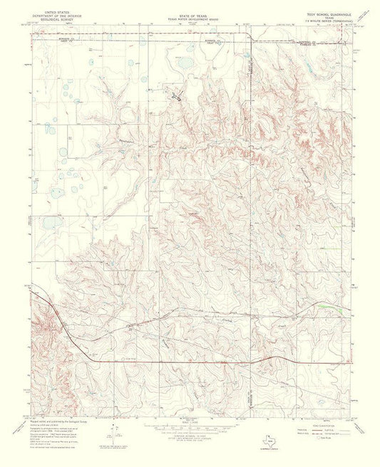 Tody School Texas Quad - USGS 1970 White Modern Wood Framed Art Print with Double Matting by USGS