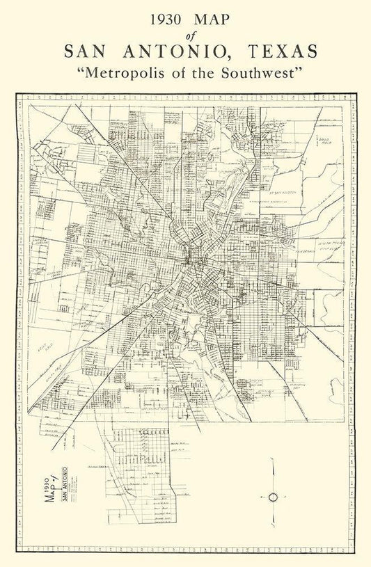 San Antonio Texas - Southwell 1928 White Modern Wood Framed Art Print with Double Matting by Southwell
