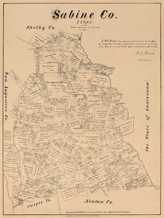 Sabine County Texas - Walsh 1879 White Modern Wood Framed Art Print with Double Matting by Walsh