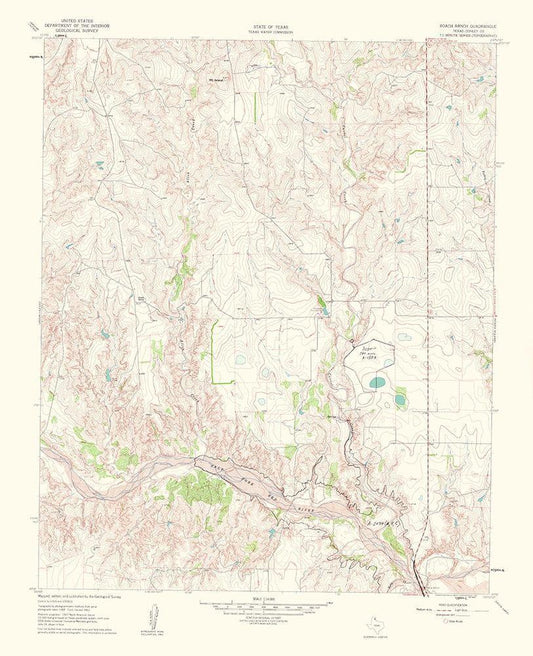 Roach Ranch Texas Quad - USGS 1963 White Modern Wood Framed Art Print with Double Matting by USGS
