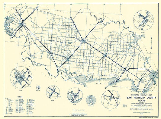 San Patricio Texas Highway - Highway Dept 1936 White Modern Wood Framed Art Print with Double Matting by Highway Dept