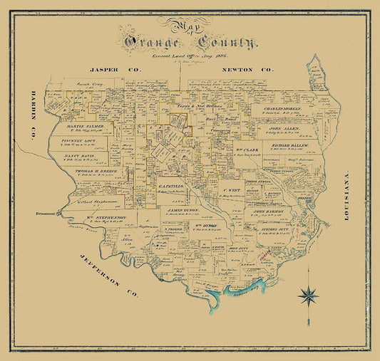 Orange County Texas - Biau 1886 White Modern Wood Framed Art Print with Double Matting by Biau