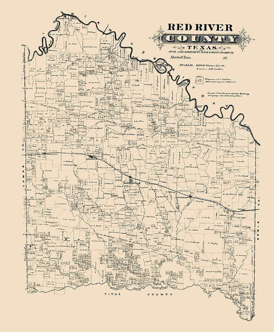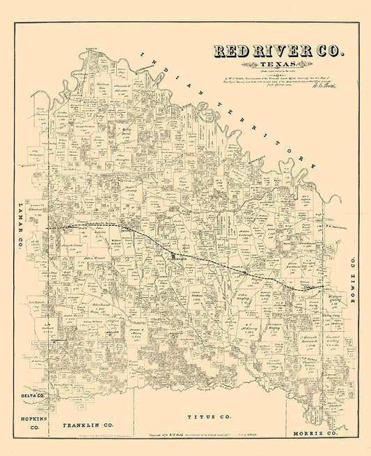 Red River County Texas -1870 White Modern Wood Framed Art Print with Double Matting by Unknown