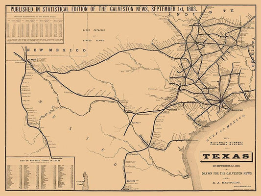 Railroad System Of Texas - Hensoldt 1883 White Modern Wood Framed Art Print with Double Matting by Hensoldt