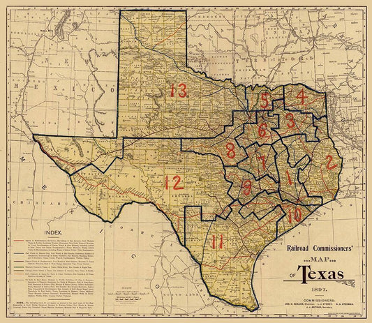 Railroad Commissioners Map of Texas -1897 White Modern Wood Framed Art Print with Double Matting by Unknown